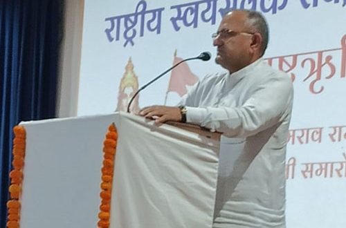 उन्होंने कहा कि बाबा साहेब ही थे जिन्होंने संविधान में संस्कृत को सम्मान दिलाने के लिए कार्य किया। भारत को संविधान देने वाले बाबा साहेब के लिए तत्त्कालीन सरकार ने उनकी स्मृति में पंच तीर्थ का निर्माण करवाया है। संघ के तृतीय सरसंघ चालक बाला साहब ने अपने घर से अस्पर्श्ता व भेदभाव दूर करने के लिए माता के हाथ का खाना उनकी रसोई में भोजन करवाकर की। वह कहते थे “अगर अस्पर्श्ता पाप नहीं हैं। उडुपी की संत सभा में गुरुजी ने संतों के मुख से कहलवाया था ‘‘हिन्दवः सोदराः सर्वे, न हिन्दू पतितो भवेत्। मम दीक्षा हिन्दूः रक्षा, मम मंत्र समानता।‘‘ सभी हिंदू सहोदर भाई हैं, कोई हिंदू पतित नहीं है, मेरी दीक्षा हिंदू रक्षा है, और समानता मेरा मंत्र है।